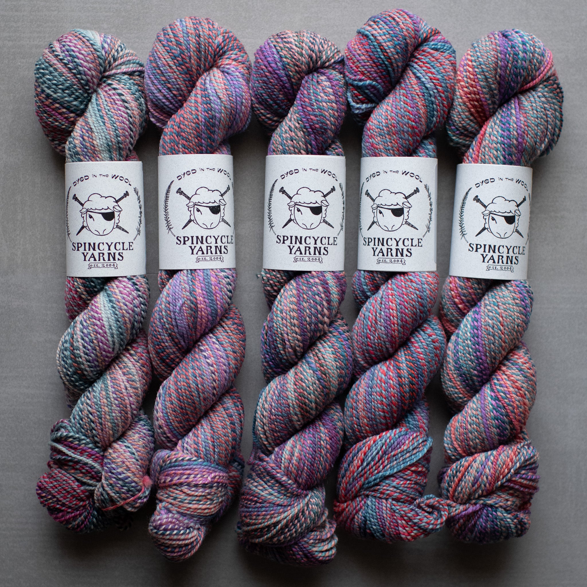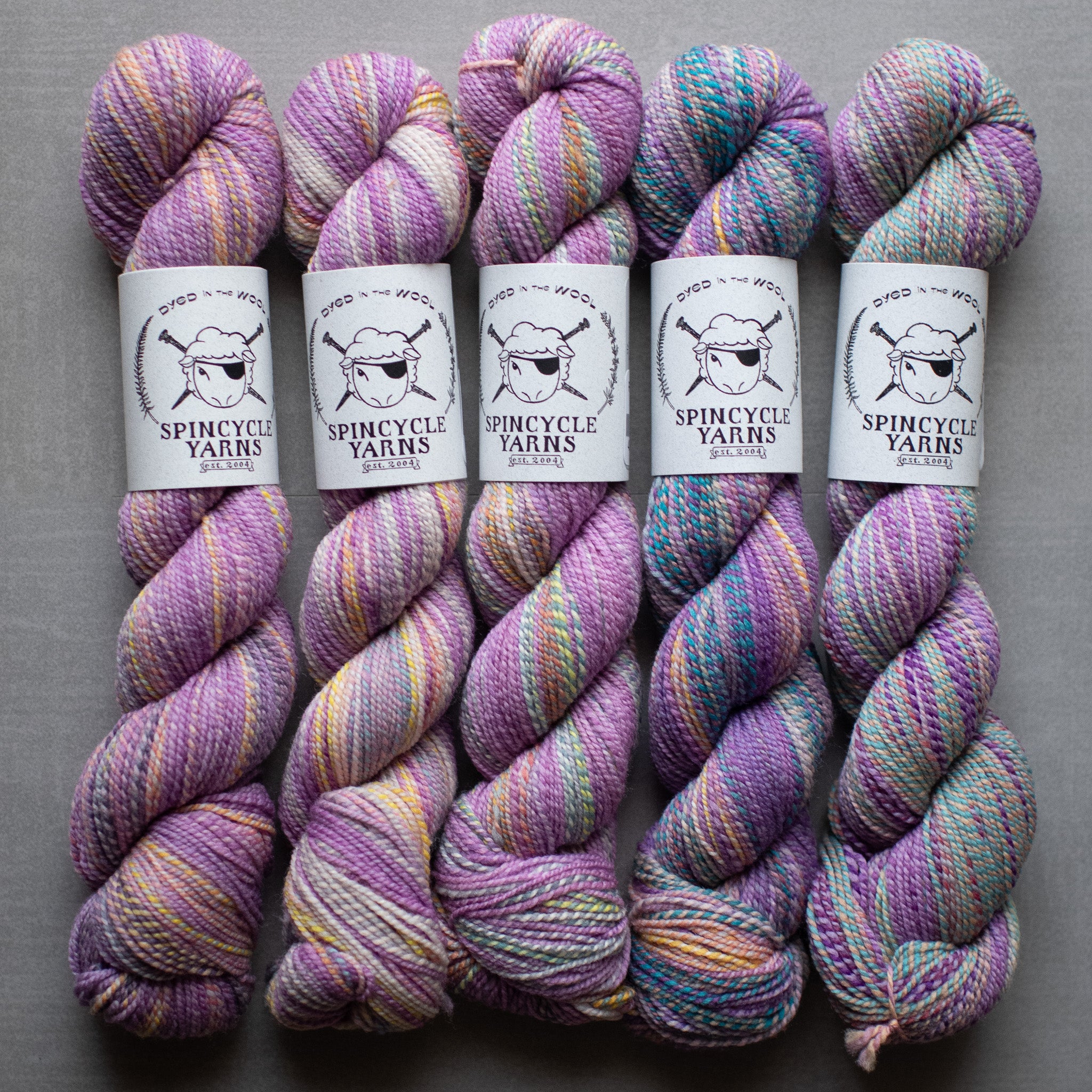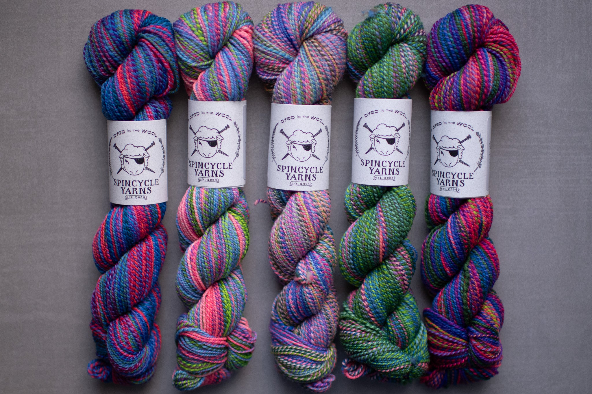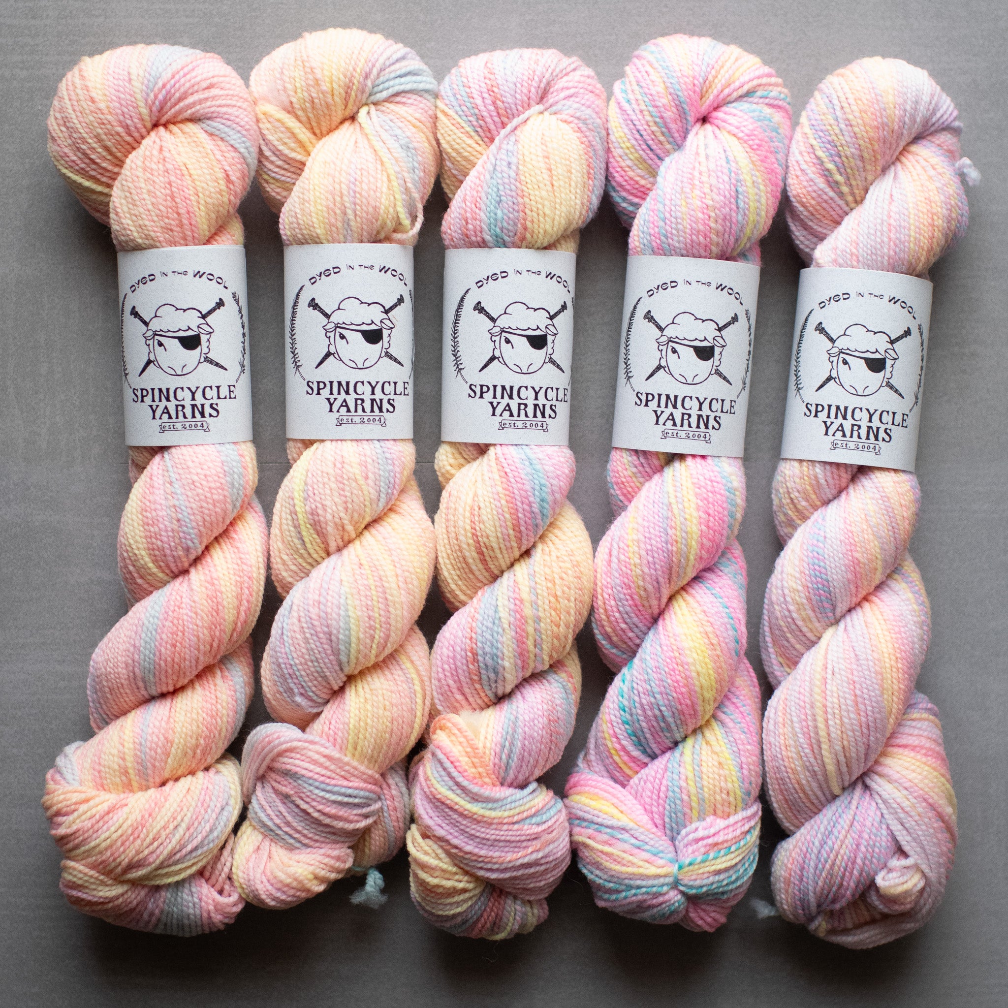 Each skein of Spincycle is very unique. While we photograph new batches as we get them, you most likely will not get the EXACT skein on the website. You can use the notes box at checkout with color preferences. Yarn requests are subject to availability and the interpretation of the shipper. Please be color specific when adding notes by saying things like ‘less blue’ or ‘want streaks of pink’ or ‘lots of peach.' We are not able to accommodate notes like ‘third from the right.’