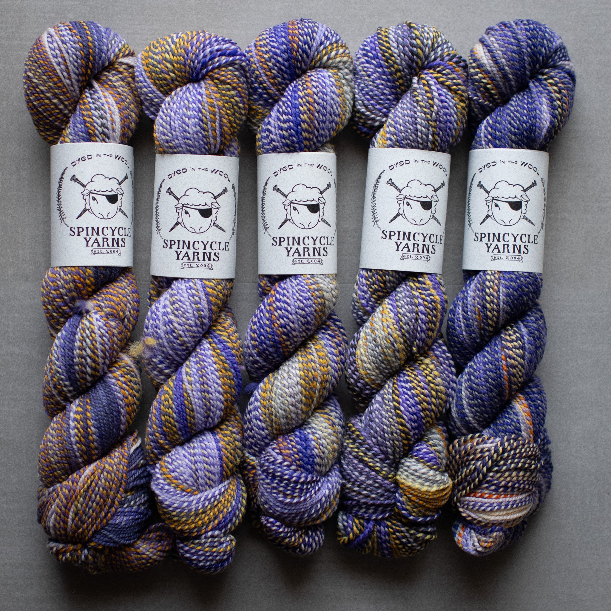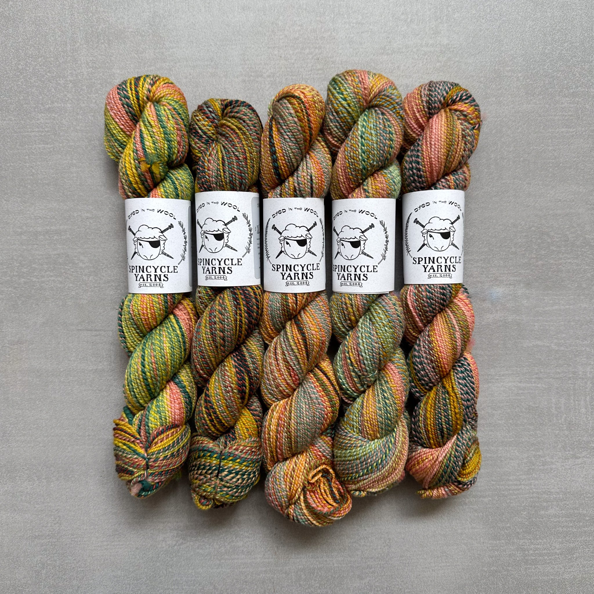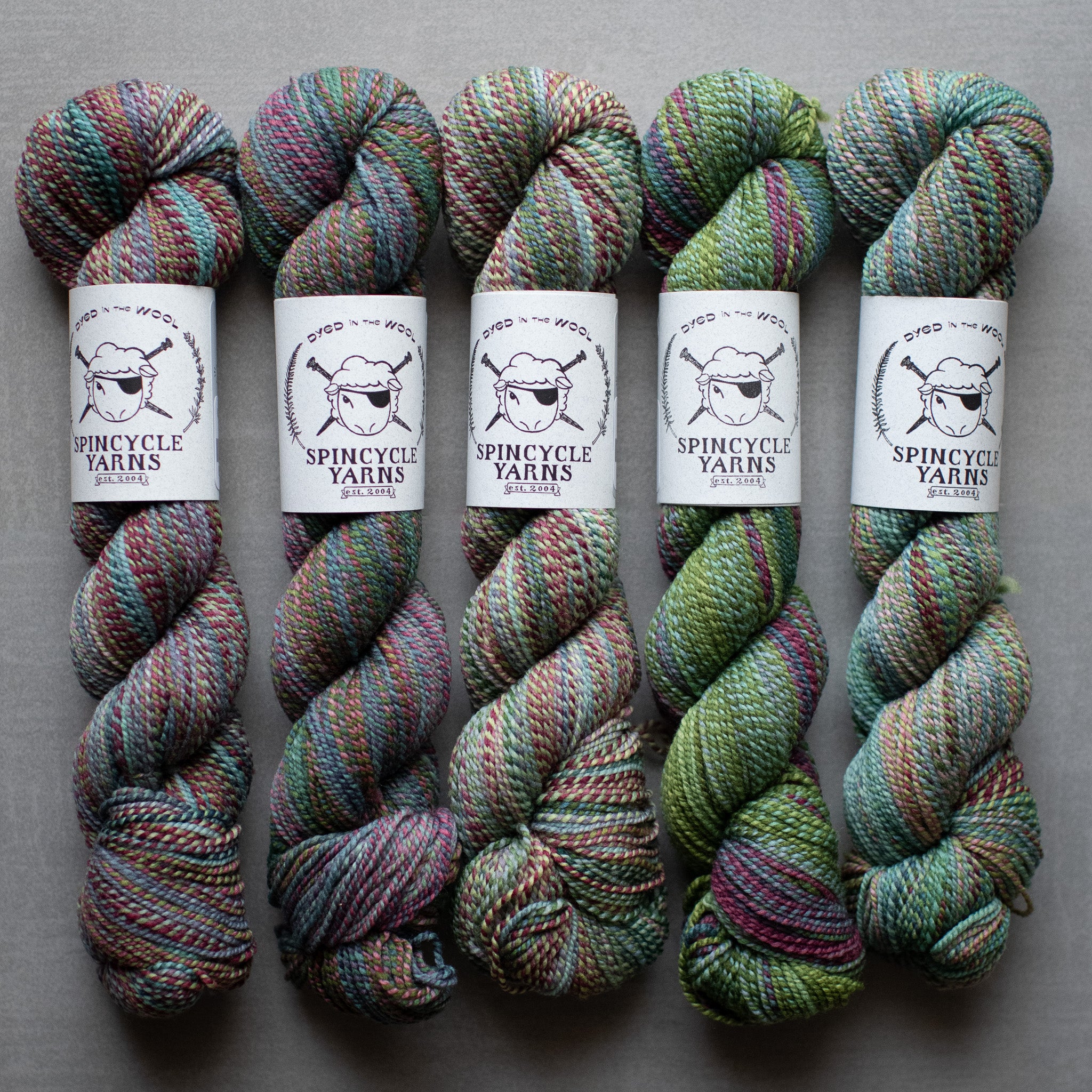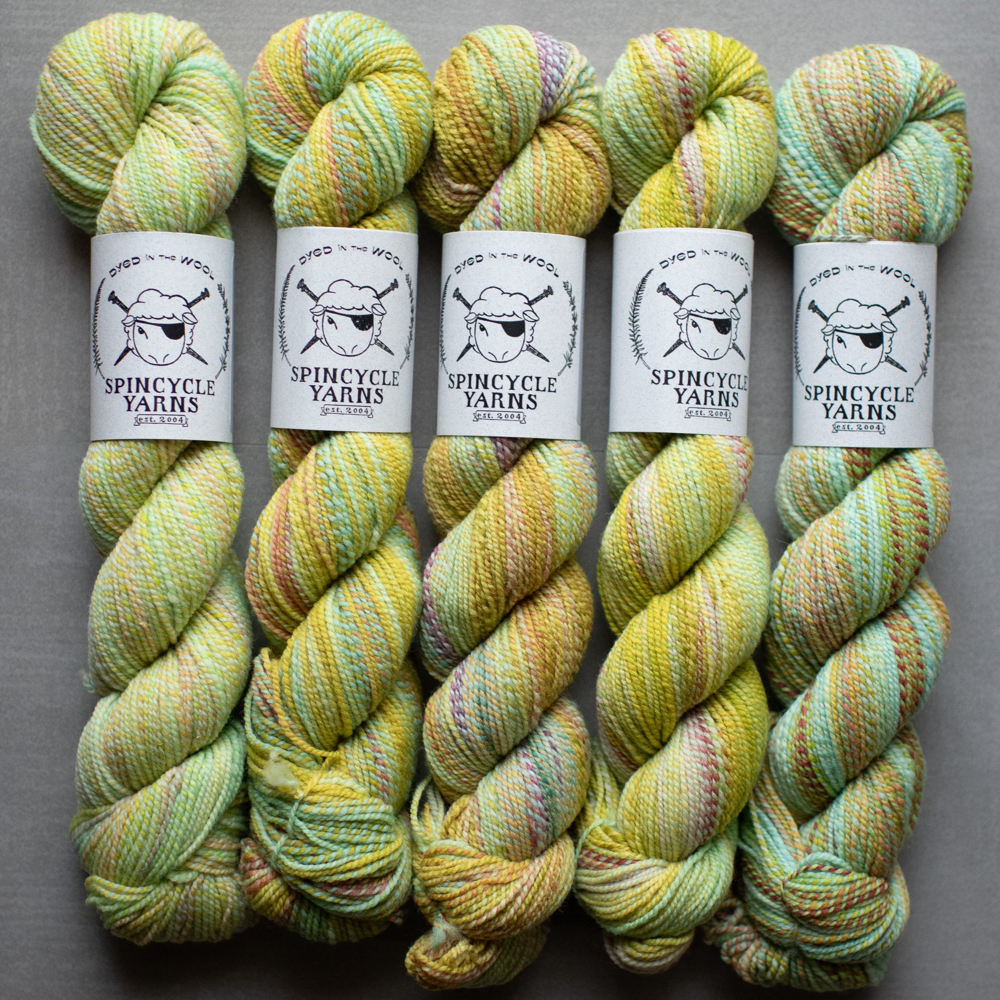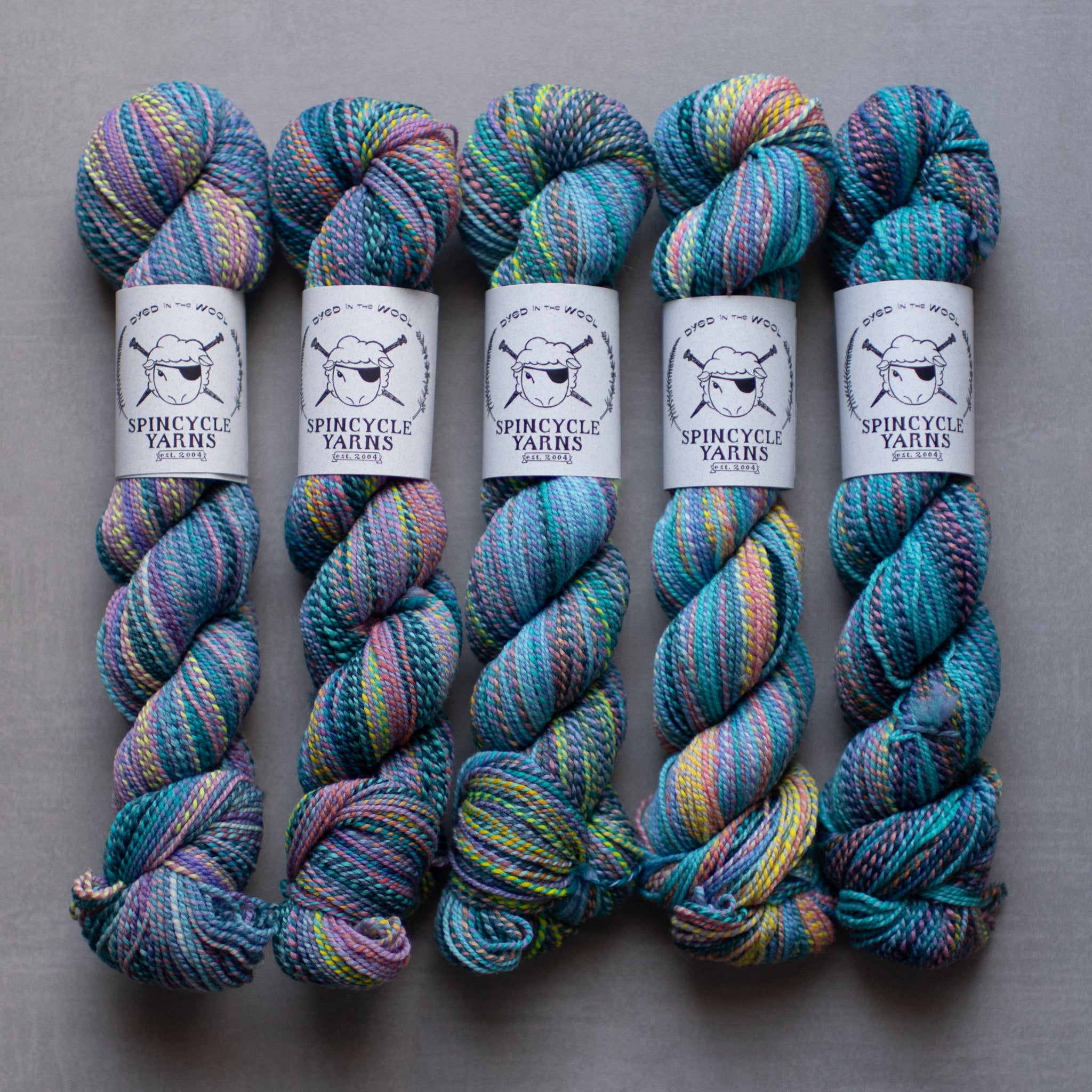 Each skein of Spincycle is very unique. While we photograph new batches as we get them, you most likely will not get the EXACT skein on the website. You can use the notes box at checkout with color preferences. Yarn requests are subject to availability and the interpretation of the shipper. Please be color specific when adding notes by saying things like ‘less blue’ or ‘want streaks of pink’ or ‘lots of peach.' We are not able to accommodate notes like ‘third from the right.’