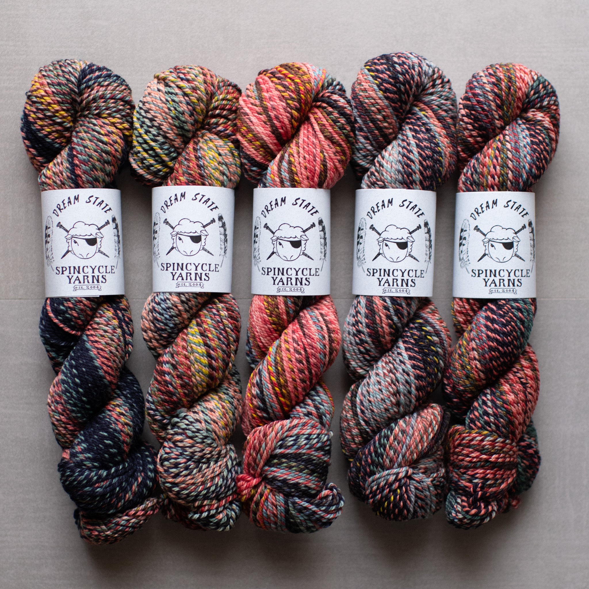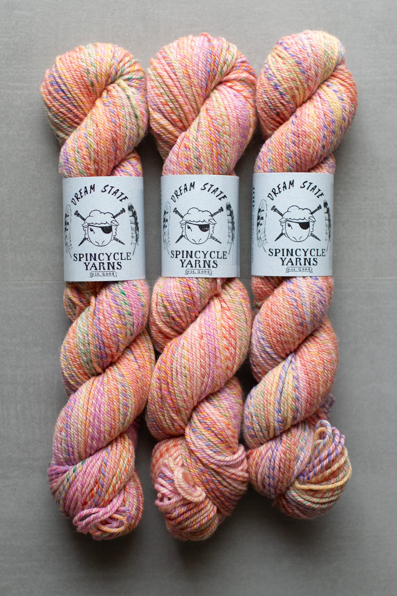 Each skein of Spincycle is very unique. While we photograph new batches as we get them, you most likely will not get the EXACT skein on the website. You can use the notes box at checkout with color preferences. Yarn requests are subject to availability and the interpretation of the shipper. Please be color specific when adding notes by saying things like ‘less blue’ or ‘want streaks of pink’ or ‘lots of peach.' We are NOT able to accommodate notes like ‘third from the right.’