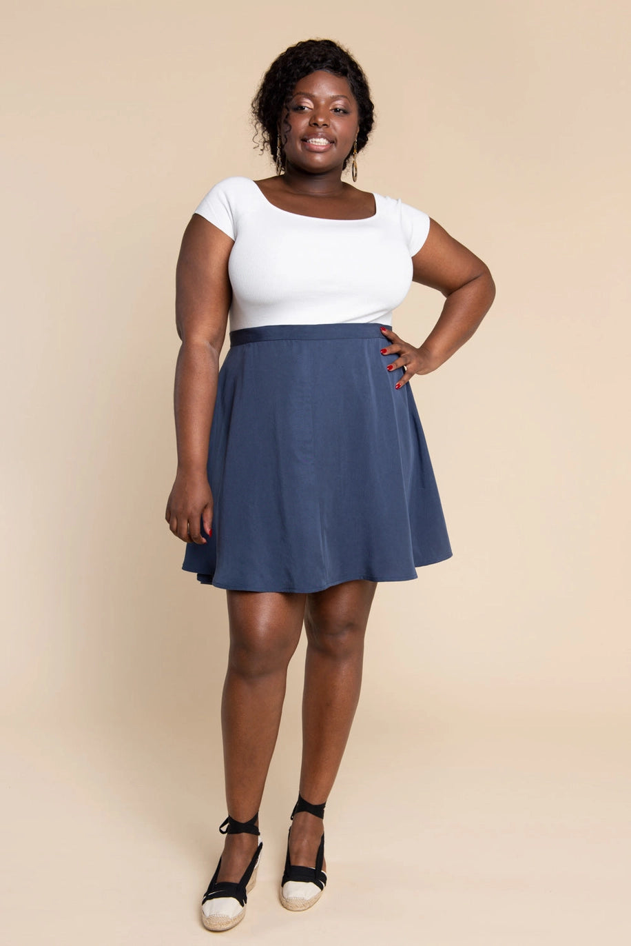 Part of the Rome Collection, the Fiore Skirt is a chic, high-waisted A-line skirt with just the right amount of flare and volume. A beginner-friendly pattern with multiple variations, this elevated basic has tons of outfit potential.