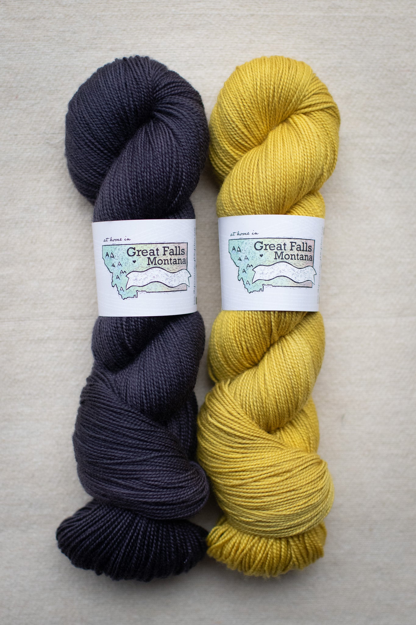 These kits feature our Highwood Sock base, dyed in a few of our favorite solid colorways. Highwood Sock is one of our exclusive Sock Squad bases...if you love knitting with it, you can learn more about our Sock Squad subscription here or sign up now here!