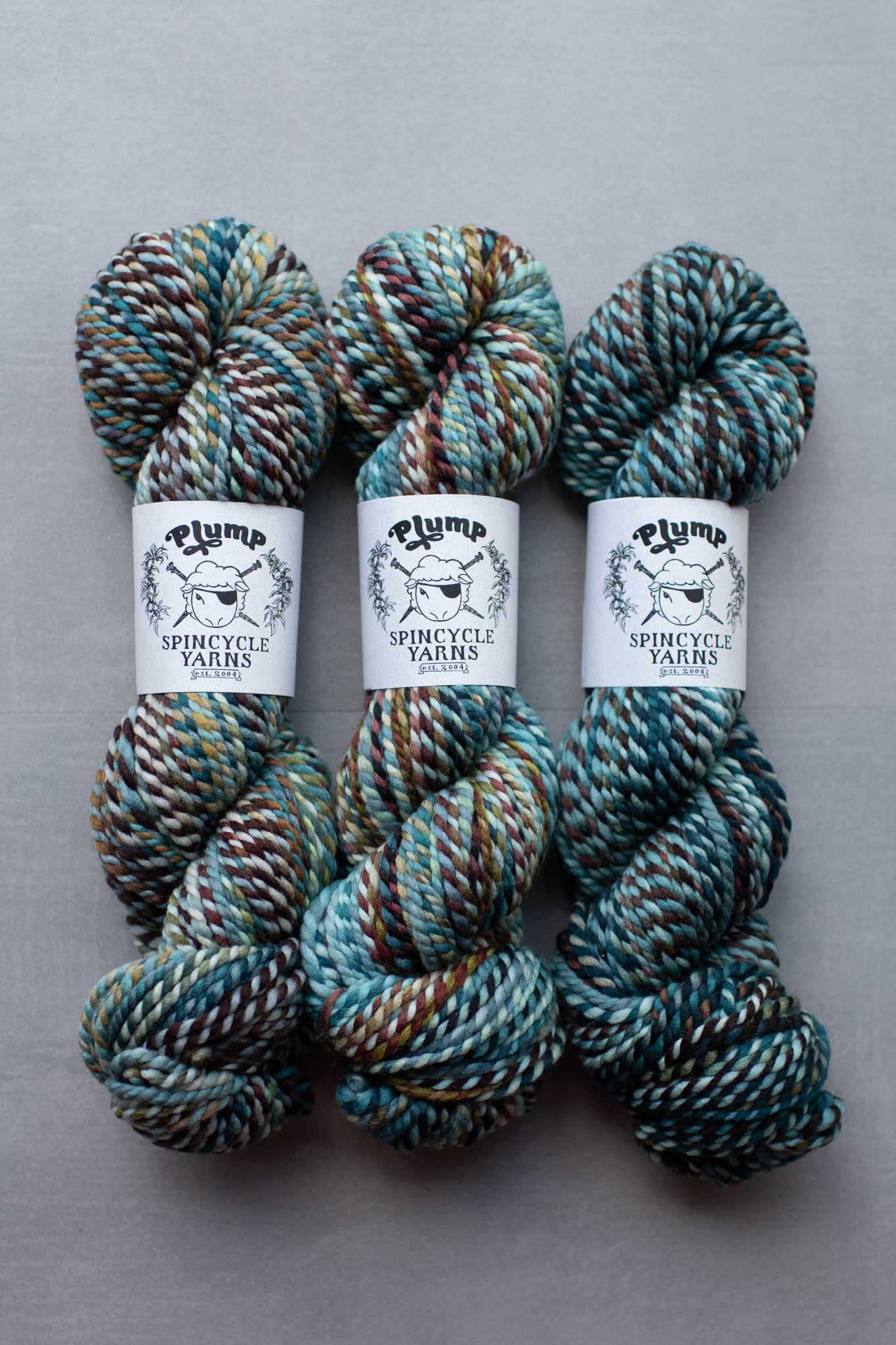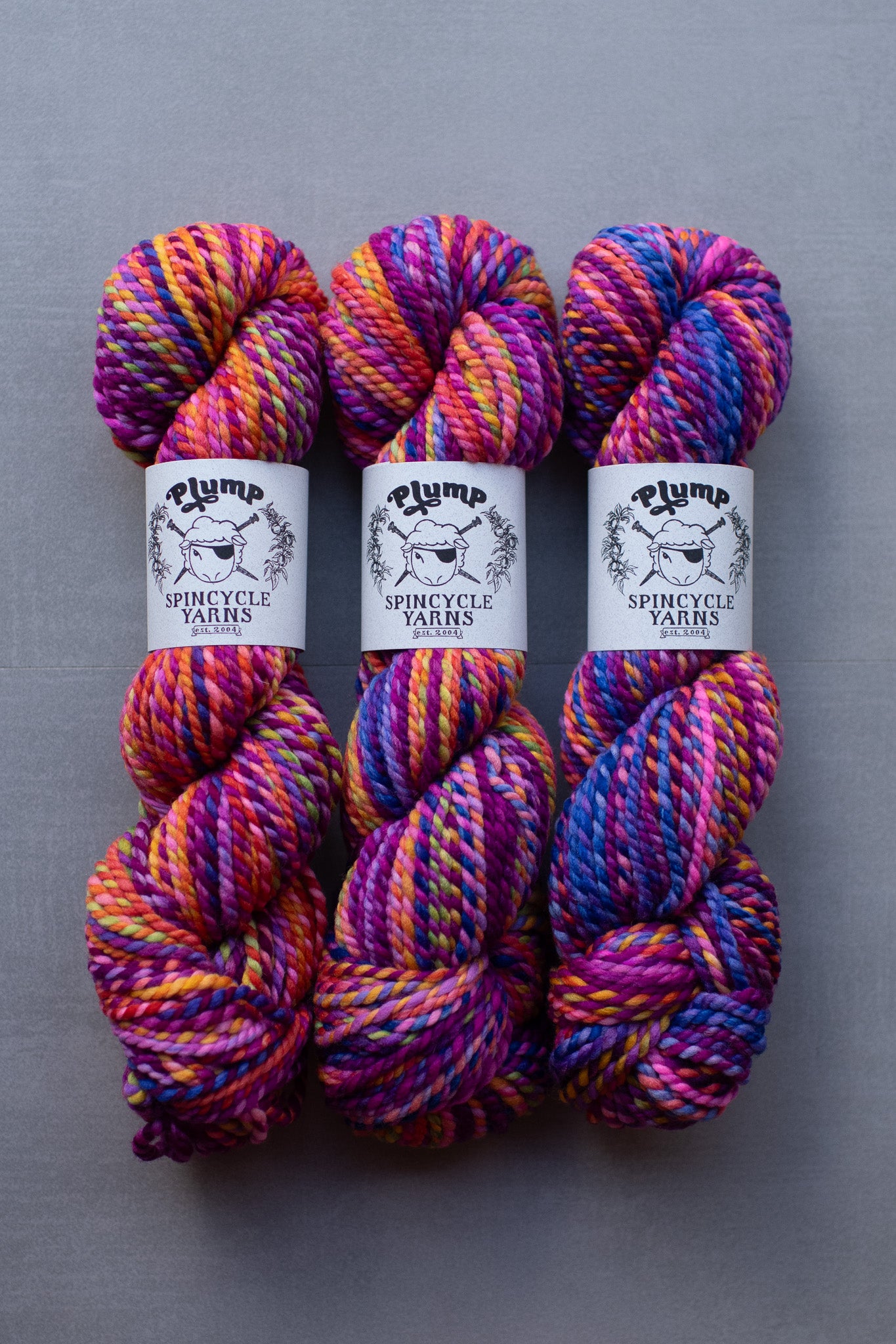 Plump is Spincycle's newest base, and we're already in love! This 2ply bulky yarn is perfect for quick knits, and the colors pop just like all your other Spincycle favorites! 100% SW American Merino Wool, Bulky Weight, 100 yards per skein.
